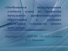 Особенности моделирования учебного плана по профессии начального