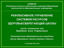 СЕМИНАР Ресурсный подход в обеспечении здоровьесберегающей деятельности образовательных