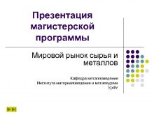Презентация магистерской программы Мировой рынок сырья и металлов