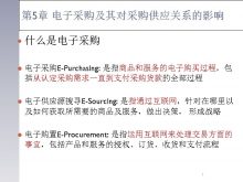 第 5章 电子采购及其对采购供应关系的影响 什么是电子采购 l 电子采购E-Purchasing 是指商品和服务的电子购买过程 包 括从认定采购需求一直到支付采购货款的全部过程