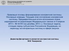Правовые основы формирования контрактной системы Основные новации Текущий