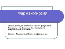 Фармакогнозия Лекции для студентов биологического факультета Специальности Биология