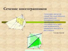 Сечение многогранников Геометрия является самым могущественным средством для