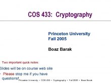COS 433 Cryptography Princeton University Fall 2005 Boaz