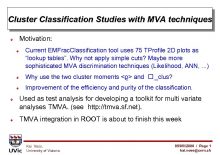 Cluster Classification Studies with MVA techniques Motivation Current