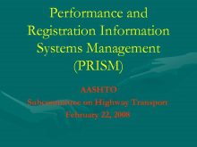 Performance and Registration Information Systems Management PRISM AASHTO