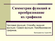 Симметрия функций и преобразование их графиков Числовая функция
