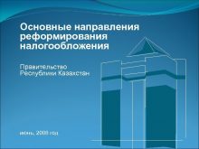 Основные направления реформирования налогообложения Правительство Республики Казахстан июнь