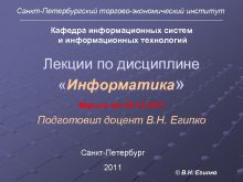 Санкт-Петербургский торгово-экономический институт Кафедра информационных систем и информационных