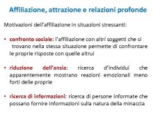Affiliazione attrazione e relazioni profonde Motivazioni dell affiliazione in