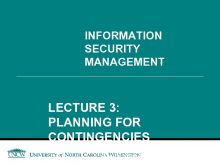 INFORMATION SECURITY MANAGEMENT LECTURE 3 PLANNING FOR CONTINGENCIES
