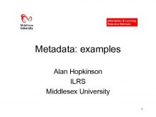 Metadata examples Alan Hopkinson ILRS Middlesex University 1