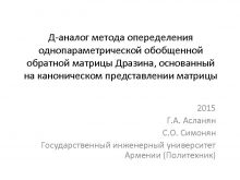 Д-аналог метода опеределения однопараметрической обобщенной обратной матрицы Дразина