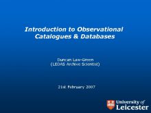 Introduction to Observational Catalogues Databases Duncan Law-Green