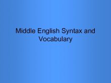 Middle English Syntax and Vocabulary Middle English