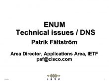 ENUM Technical issues DNS Patrik Fältström Area