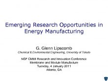 Emerging Research Opportunities in Energy Manufacturing G Glenn