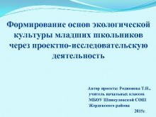 Формирование основ экологической культуры младших школьников через проектно-исследовательскую