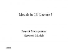 Models in I E Lecture 5 Project Management