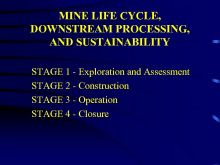 MINE LIFE CYCLE DOWNSTREAM PROCESSING AND SUSTAINABILITY STAGE