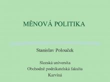 MĚNOVÁ POLITIKA Stanislav Polouček Slezská universita Obchodně podnikatelská