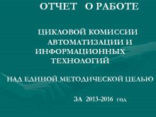ОТЧЕТ О РАБОТЕ ЦИКЛОВОЙ КОМИССИИ АВТОМАТИЗАЦИИ И ИНФОРМАЦИОННЫХ