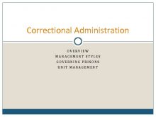 Correctional Administration OVERVIEW MANAGEMENT STYLES GOVERNING PRISONS UNIT