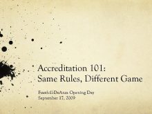 Accreditation 101 Same Rules Different Game Foothill-De Anza