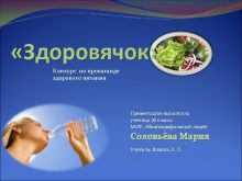 Здоровячок Конкурс по пропаганде здорового питания Презентацию