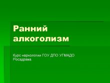 Ранний алкоголизм Курс наркологии ГОУ ДПО УГМАДО Росздрава
