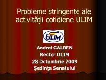 Probleme stringente ale activităţii cotidiene ULIM Andrei GALBEN