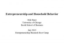 Entrepreneurship and Household Behavior Erik Hurst University of