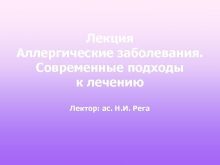 Лекция Аллергические заболевания Современные подходы к лечению Лектор
