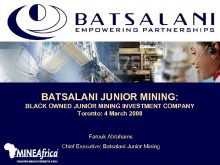 BATSALANI JUNIOR MINING BLACK OWNED JUNIOR MINING INVESTMENT