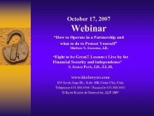 October 17 2007 Webinar How to Operate in