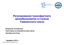 Регулирование трансфертного ценообразования в странах Таможенного союза Владимир