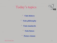 Today s topics Unix history Unix philosophy