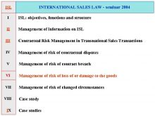 INTERNATIONAL SALES LAW — seminar 2004 ISL I