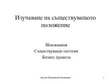 Изучаване на съществуващото положение Изисквания Съществуващи системи Бизнес