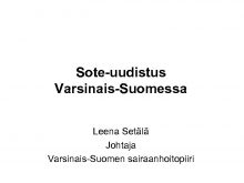 Sote-uudistus Varsinais-Suomessa Leena Setälä Johtaja Varsinais-Suomen sairaanhoitopiiri