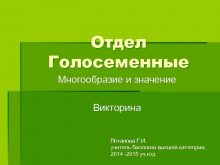 Отдел Голосеменные Многообразие и значение Викторина Потапова Г
