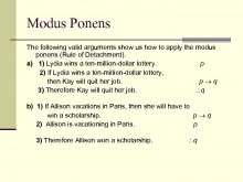 Modus Ponens The following valid arguments show us
