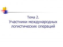 Тема 2 Участники международных логистических операций Объекты