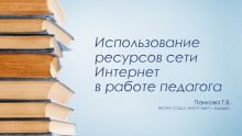 Использование ресурсов сети Интернет в работе педагога Панкова