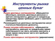 Инструменты рынка ценных бумаг Рынок долговых инструментов -обращаются