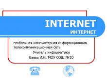 INTERNET ИНТЕРНЕТ глобальная компьютерная информационная телекоммуникационная сеть Учитель