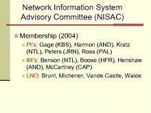 Network Information System Advisory Committee NISAC n Membership