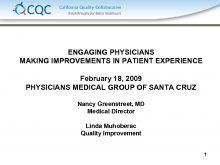 ENGAGING PHYSICIANS MAKING IMPROVEMENTS IN PATIENT EXPERIENCE February