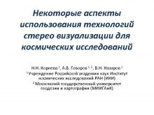 Некоторые аспекты использования технологий стерео визуализации для космических
