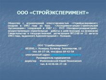 ООО СТРОЙЭКСПЕРИМЕНТ n Общество с ограниченной ответственностью Стройэксперимент